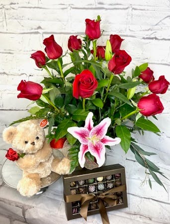 Melt her heart with our Be Mine rose design! Bagoy's best-selling premium roses are the queen of envy. She'll love the intensity of color, long-stems, gentle scent, and abundant petal count that lasts and lasts. Our designers create with love and precision, then add gorgeous, fragrant focal accent Lilies, to create the perfect Valentine gift for your love.