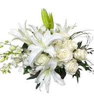 Whether you’re sending a peaceful bouquet of white lilies and soft greenery, a garden-inspired planter, or a colorful floral tribute to reflect a pet’s vibrant spirit, our pet sympathy flowers are crafted with care and meaning. Many arrangements can be personalized with keepsake items such as paw print stones, angel figurines, or pet-themed memorial plaques to help preserve special memories.